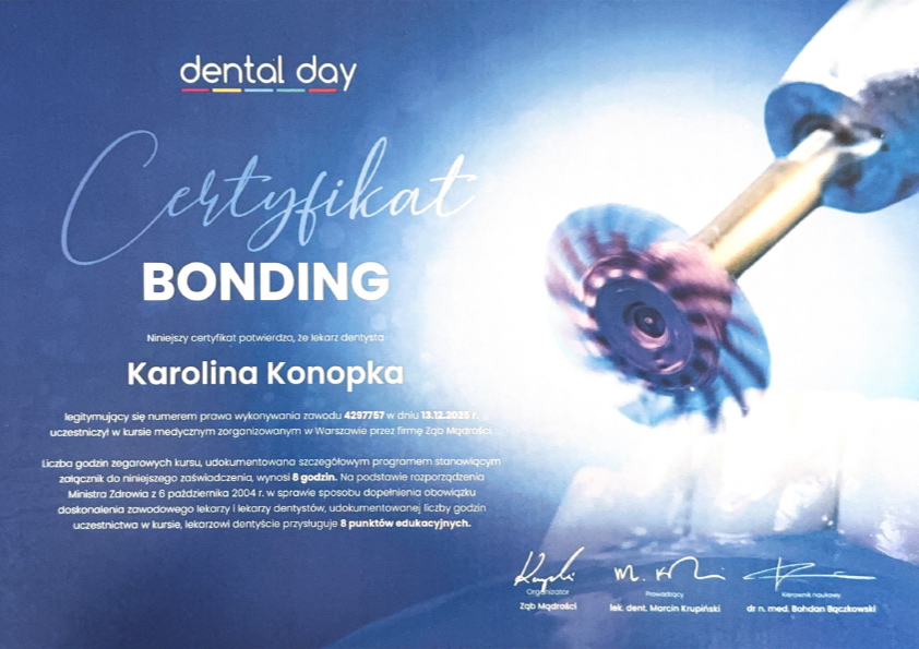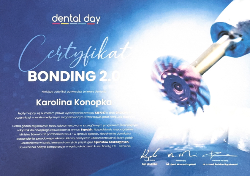 Wykwalifikowana lekarz- dentysta, która swoją wiedzę i umiejętności zdobyła na kierunku lekarsko- dentystycznym Gdańskiego Uniwersytetu Medycznego.